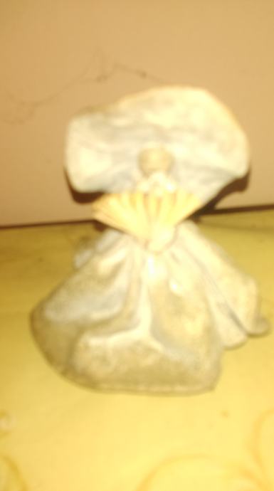 keramička figurica dame u krinolini sa šeširom izrađena 1992. na poleđini potpi umjetnika i godina izrade