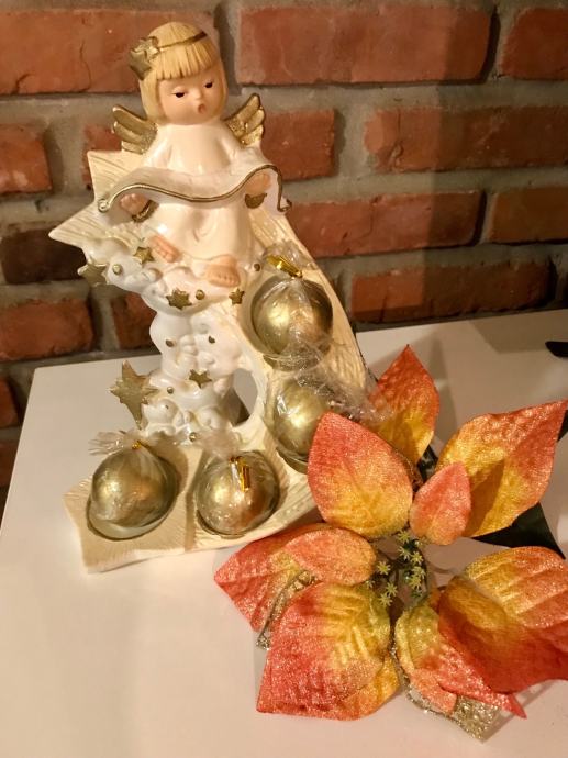 Prelijepa keramička figura anđela da 4 zlatne svijeće i velika narančasto / zlatna božićna zvijezda