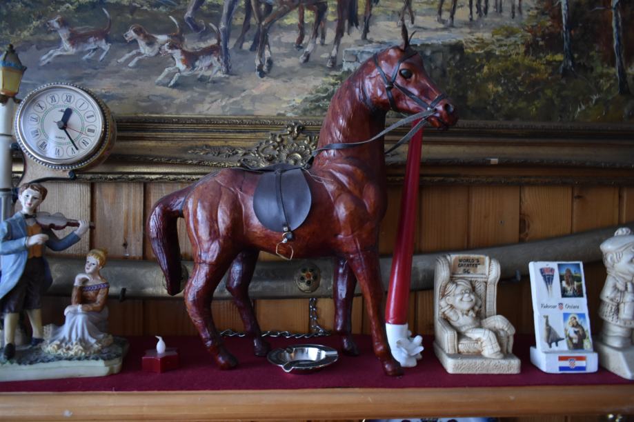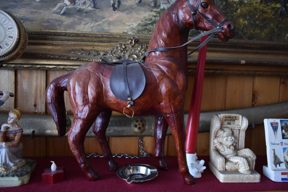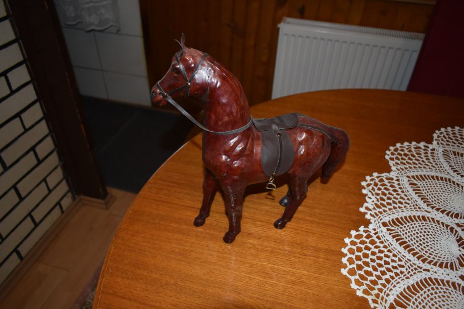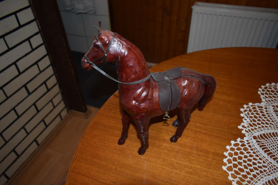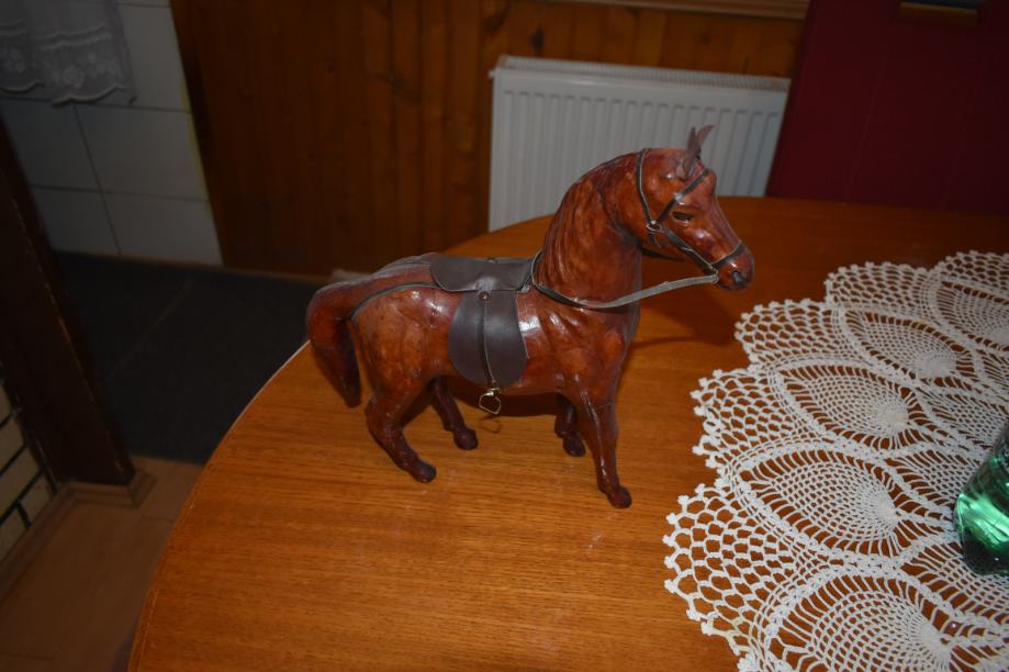 Konj izrađen iz kože visine 31 cm (glava) sedlo vis 21 cm dužine 30 cm rep --glava ---raritet stanje kao na slikama