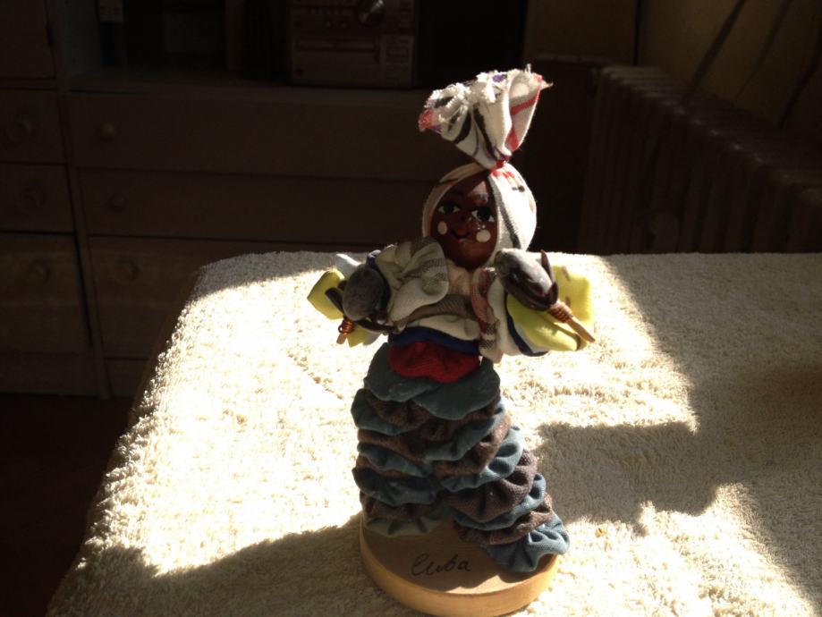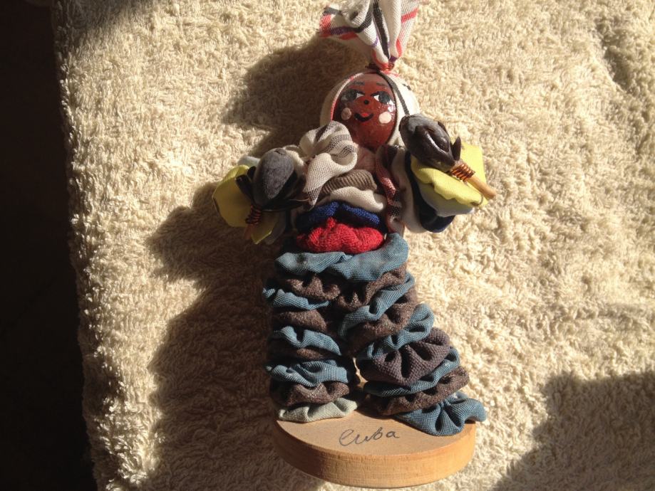 Drveno krpena lutka s Kube visine oko 10 cm. Sastavljena i od sjemenki.