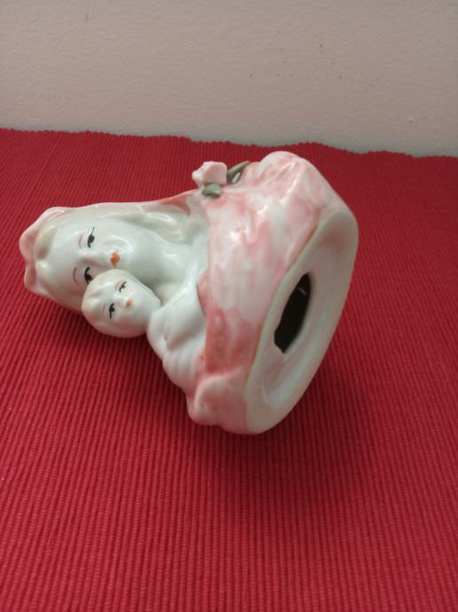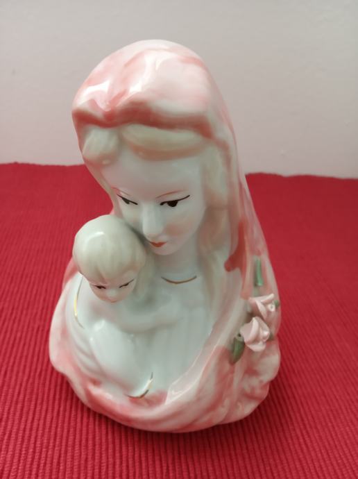 Porculanska figura Majka Marija s djetetom Isusom, neoštećena,sa nježno ružičastom koprenom,visina 13 cm,postolje 8x8 cm