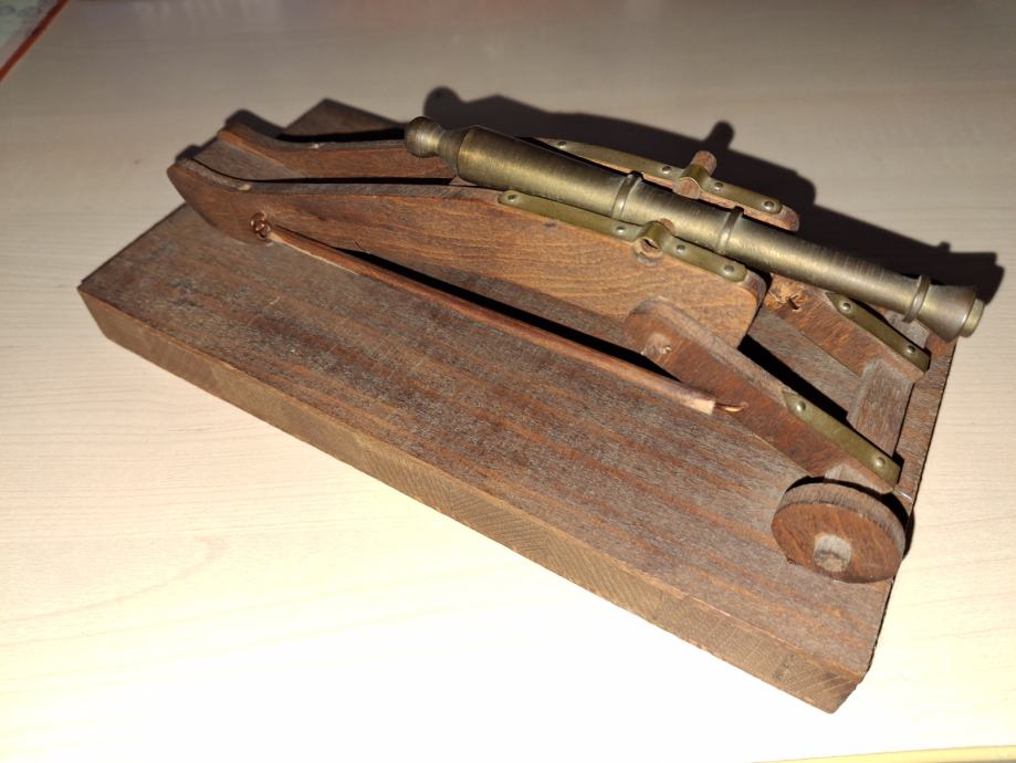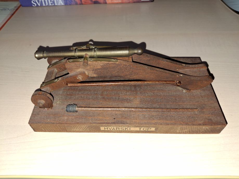 Prekrasan model hvarskog topa, star oko 50 godina. Drvo i mesing.