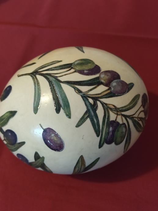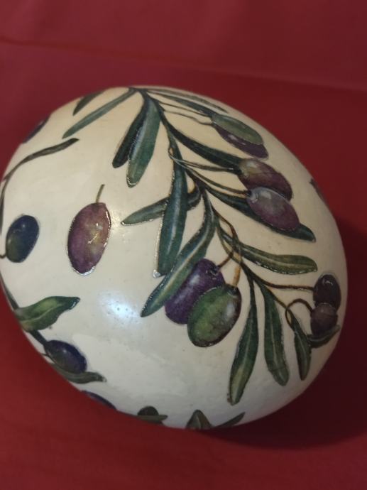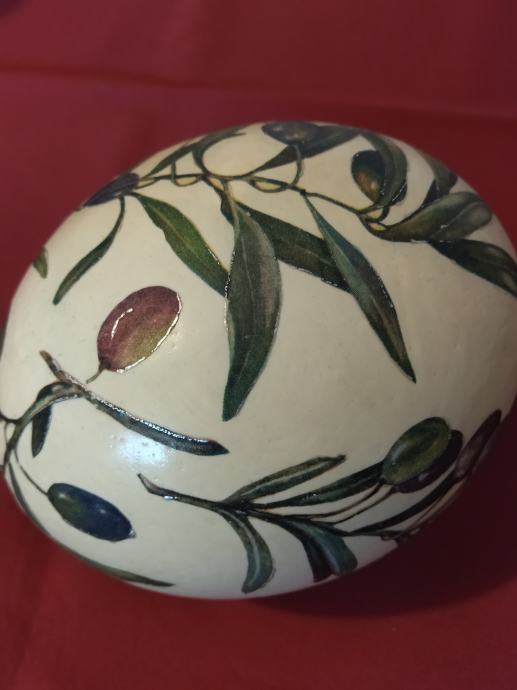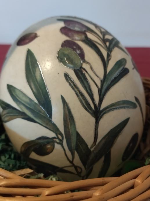 Nojevo jaje uredno oslikano motivom maslinovih grančica.