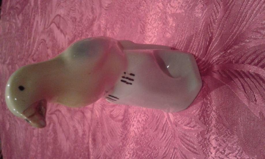 Papiga porculanska figura starinska, kvalitetne izrade. Visoka 15 cm.