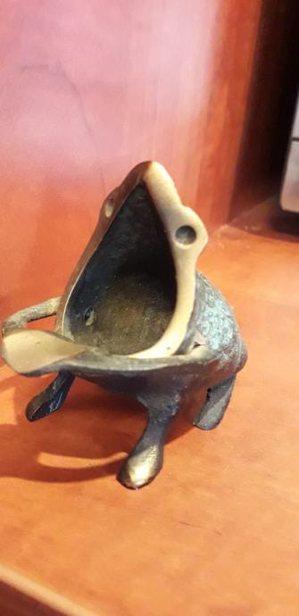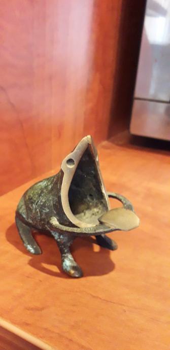 figurica žabe u obliku pepeljare, materijal-mesing (grčka)