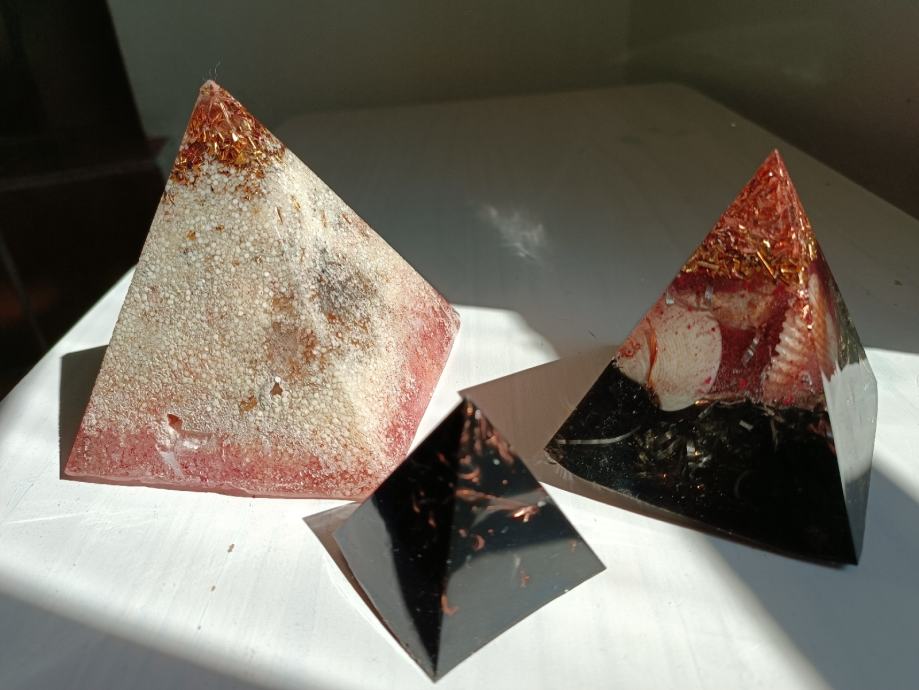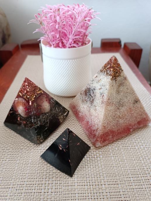 Piramide su napravljene sa gorskim kristalom na vrhu te djeluju za sva negativna zračenja te elektromagnetska nepoželjna izbijanja te ih prikuplja i zrači pozitivnom orgonskom energijom u vidu svježeg zraka te ionizirajučim djelovanjem na okolinu cijele vaše sobe.