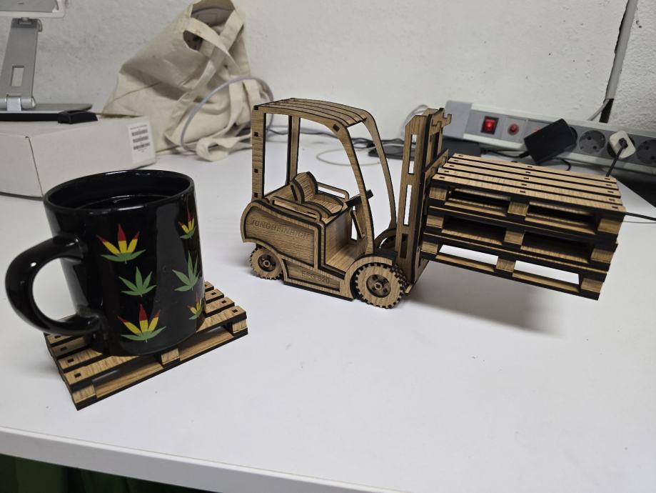 Podmetač za čaše u obliku viličara.