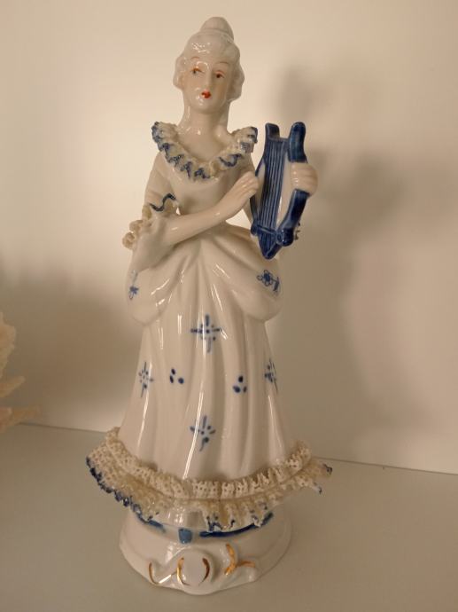 Porculan Dama sa lirom iz Njemačke, kupljena prije 40 godina. Ima oštećenje na haljinici.