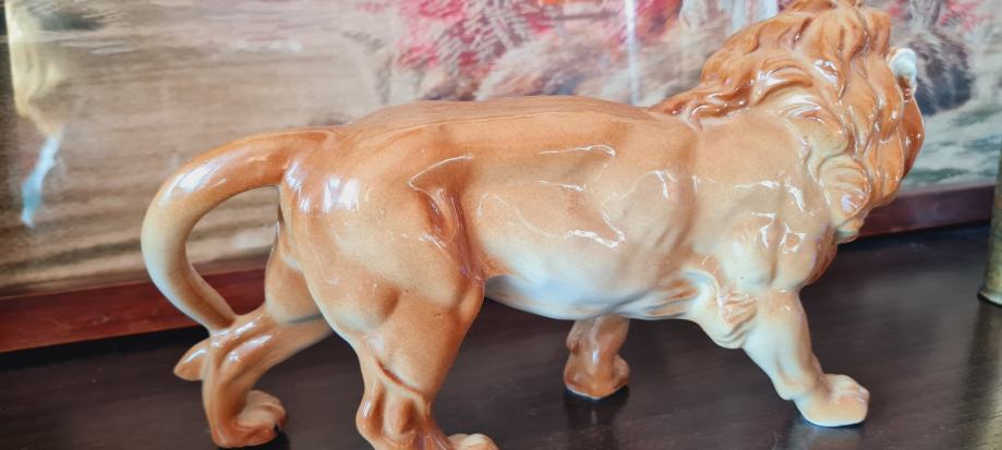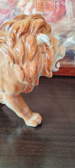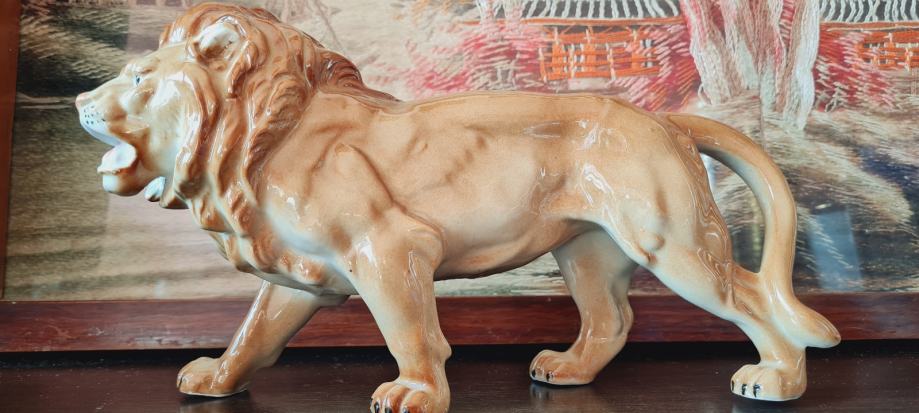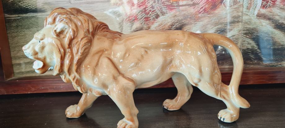 Porculanska figura, lav. Većih dimenzija. U savršenom stanju. Izrada je lijepa, ali nema vidljivih pečata ni oznaka.