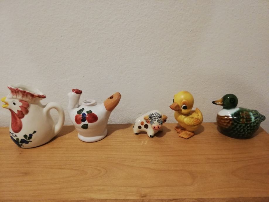 Stakleni i porculanski slonić, patkica, ovčica, pile, dva kokotića. Pojedinačna cijena za keramičku figuru je 6 eura, a za porculanskog i staklenog slonića cijena je 12 eura po komadu.