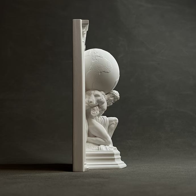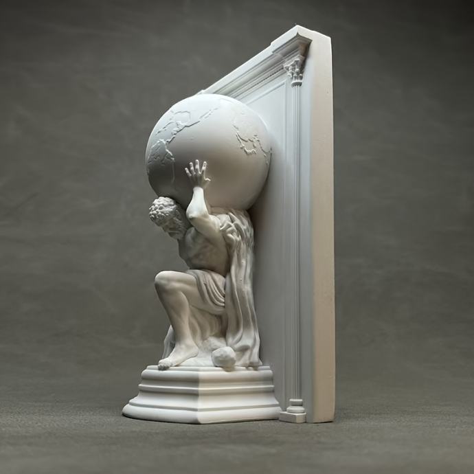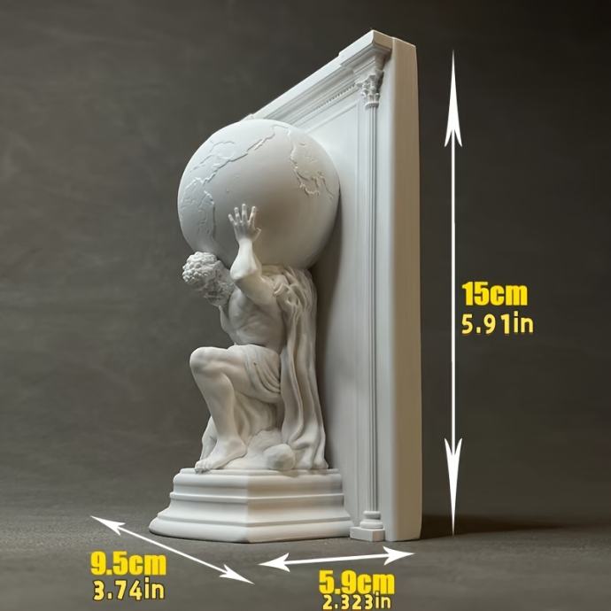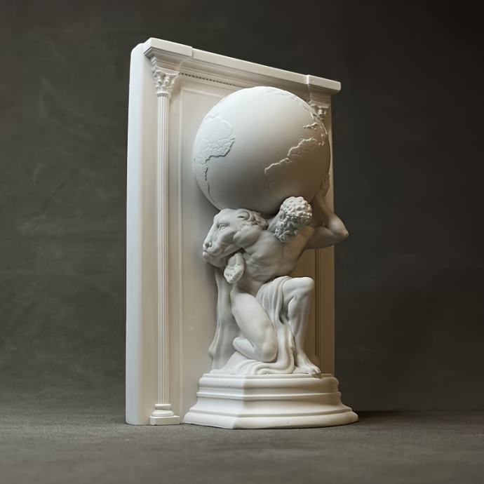 Moćna skulptura Zemlje SIZIFA izrađena od umjetničke žbuke, savršena za ukras polica za knjige, držače za knjige i kao sofisticirani ukras za stol ili poklon