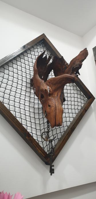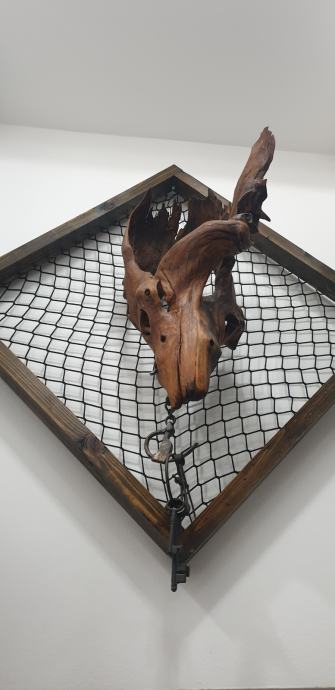 Skulptura pod naslovom Luciferov kraj ,dimenzije cca 1 x1 M. Materijal drvo.