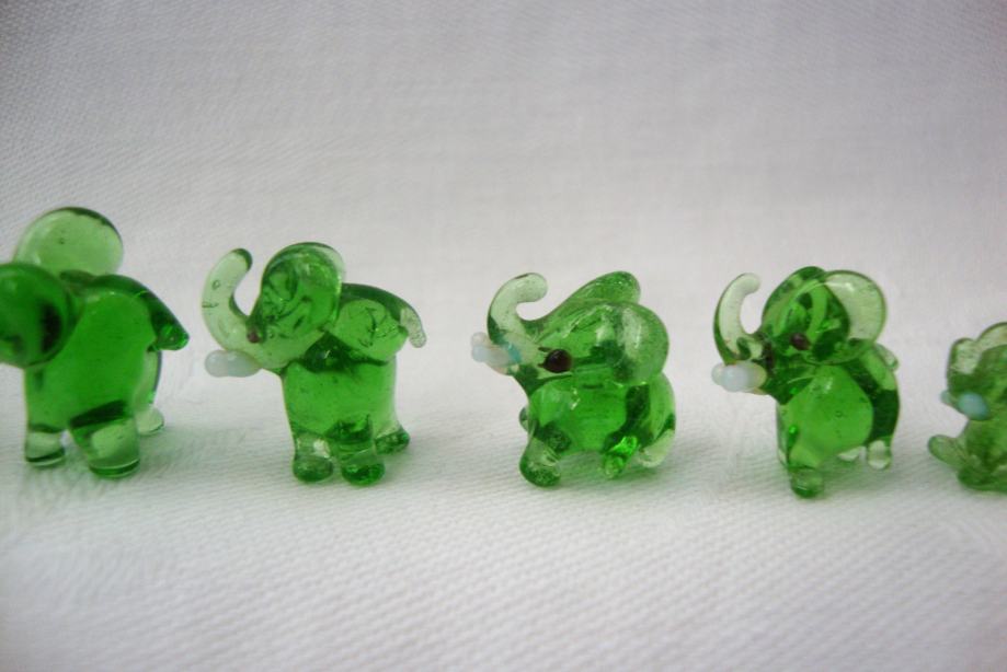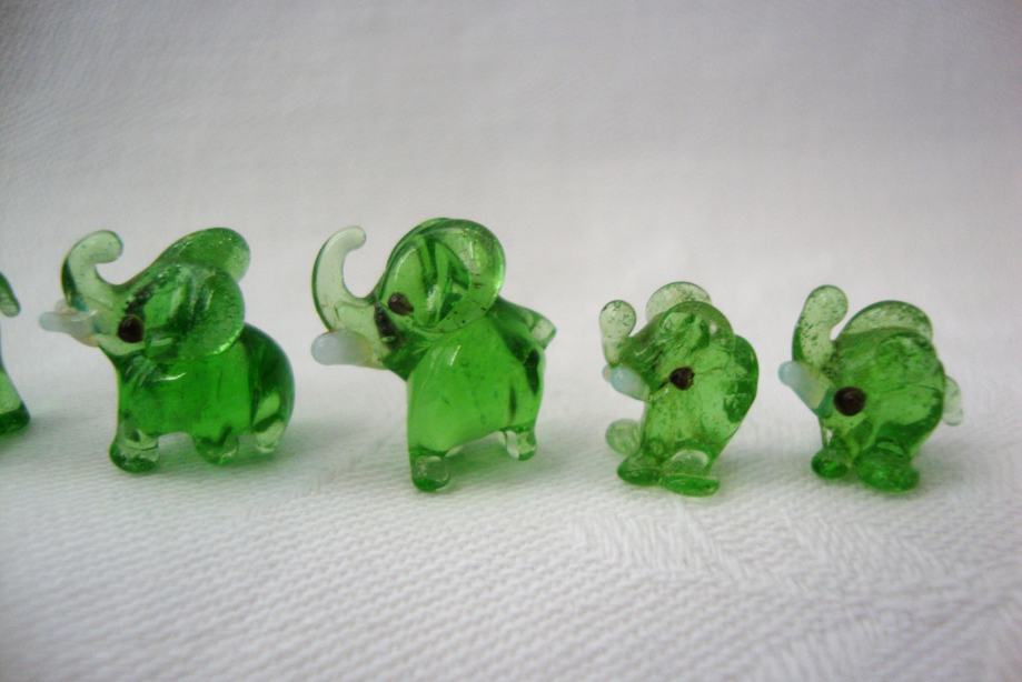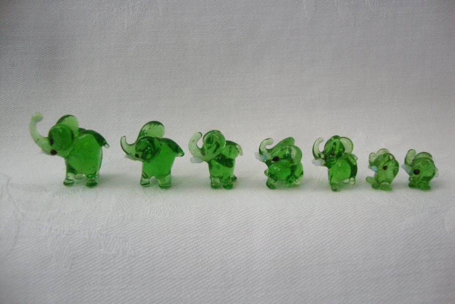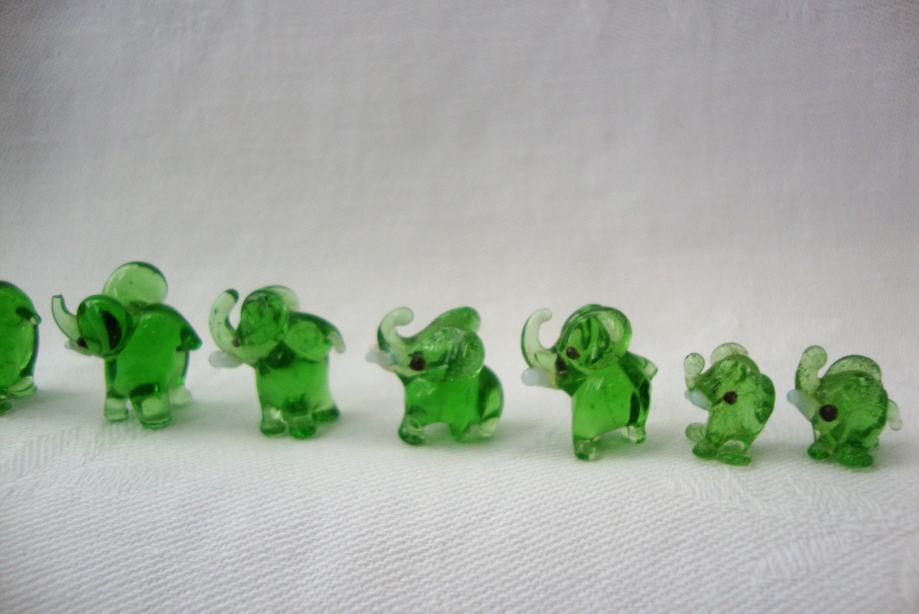 Krasna kompozicija Murano staklenih slonica minijature u super očuvanom stanju