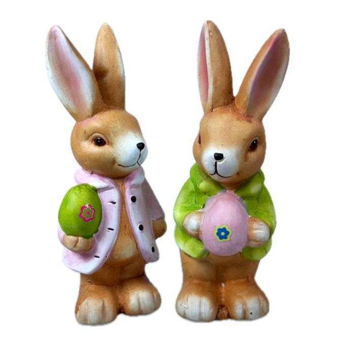 Ovaj keramički zec visine 18 cm drži obojeno uskršnje jaje.
