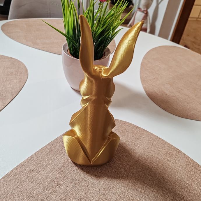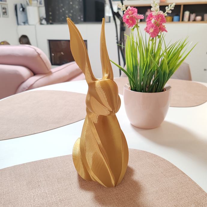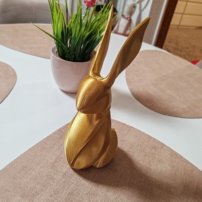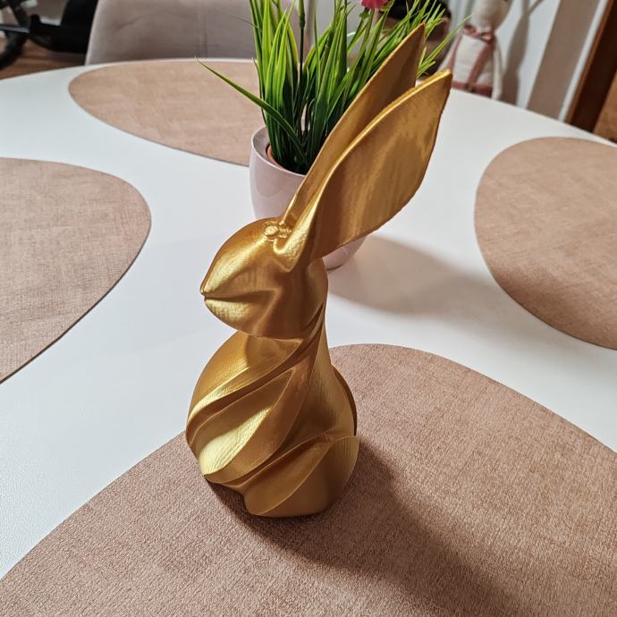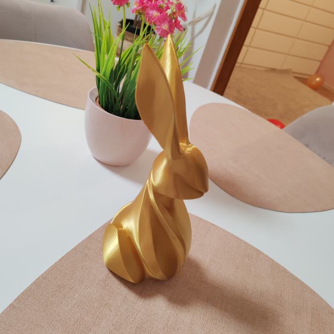 Ovaj elegantni 3D printani zec savršen je spoj modernog dizajna i sofisticirane estetike. Njegove glatke, apstraktne linije i profinjena zlatna završna obrada čine ga istaknutim dekorativnim detaljem koji unosi dozu luksuza u svaki prostor. Minimalistički, ali upečatljiv, savršeno se uklapa u interijere svih stilova – od suvremenih do klasičnih.