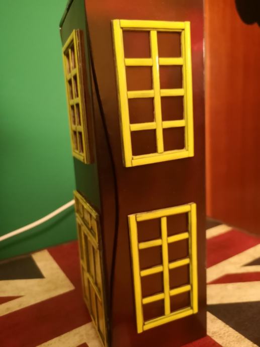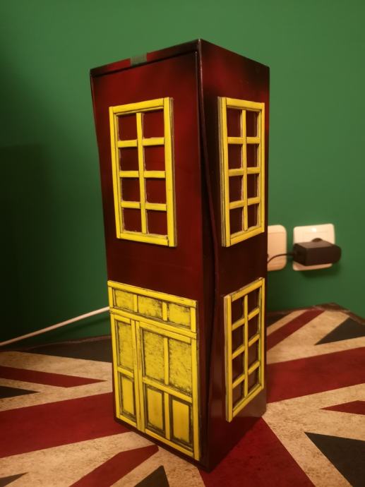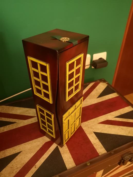 Kutija za vino, whiskey.. Čvrsti karton, drveni prozori i vrata, ručni rad, unikat. Ukrasna kutija. Dimenzije v 33 x 12 x 10,5 cm. Ne šaljem pouzećem