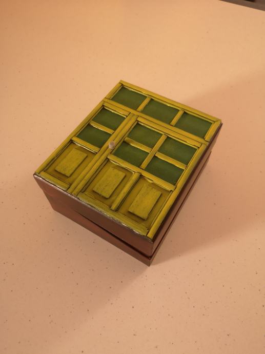 Ručni rad, unikat, čvrsta kartonska kutija, vrata drvena, ukrasna kutija, dimenzije v 16 x š 13 x d 8 cm. Ne šaljem pouzećem