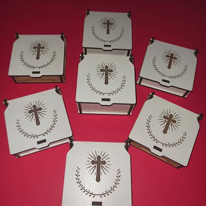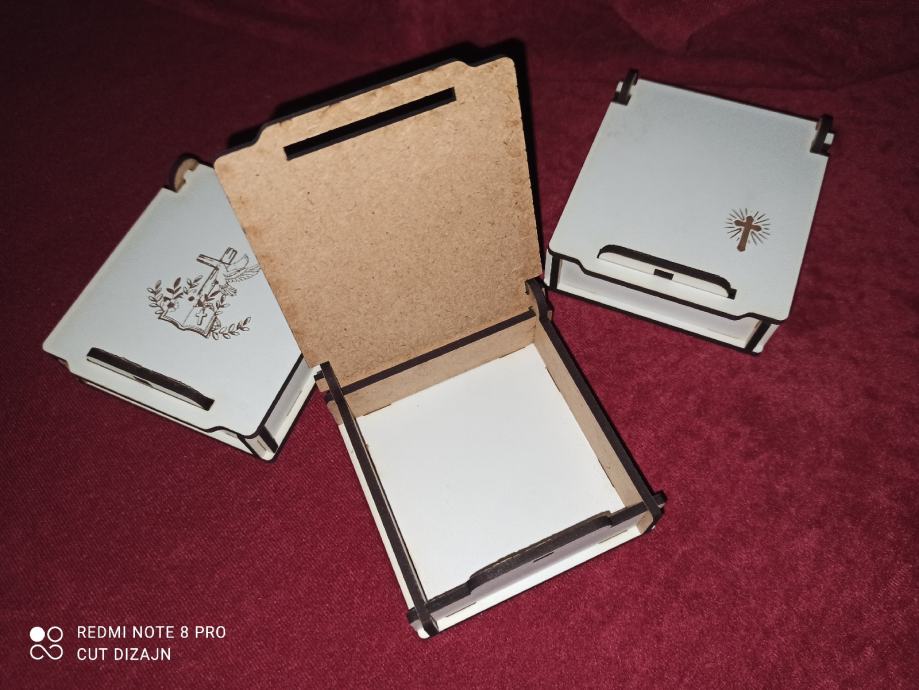 Kutijice veličine 70x70x15mm izrađene laserskom tehnologijom od HDF-a.