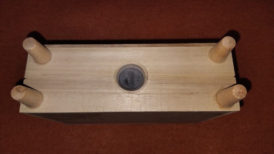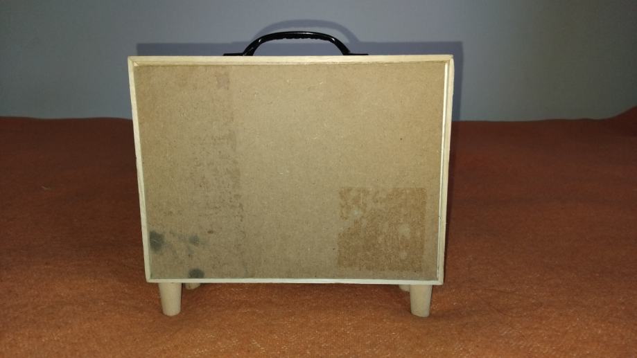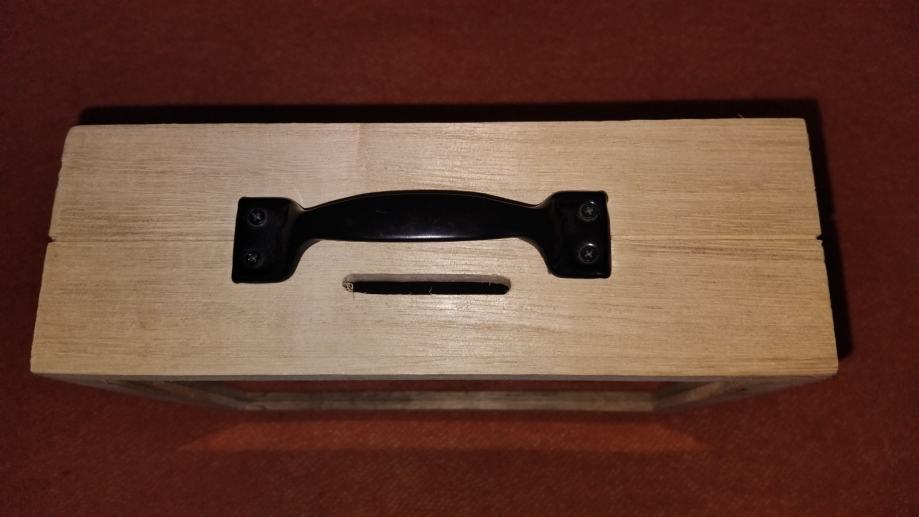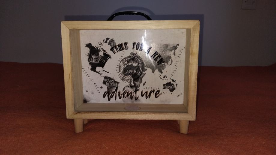 Korišteno ali čitavo. Sadrži rupu na dnu za ispuštanje novčića i ručku za nošenje kasice.