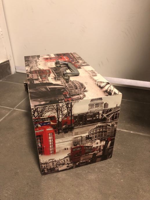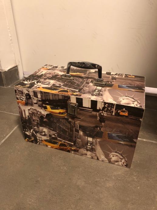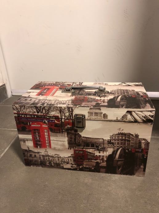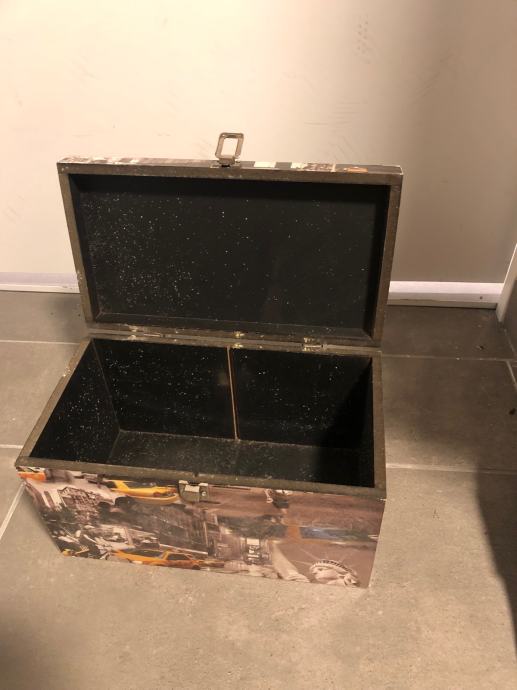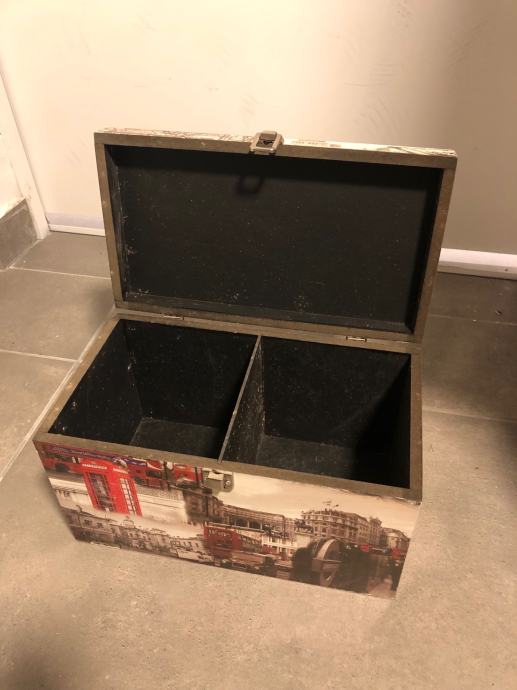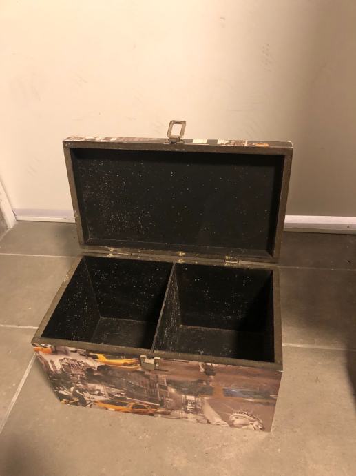 Prodaju se dvije drvene ukrasne kutije-škrinje za pohranjivanje manjih stvari (nakita, uspomena i sl.) Kutije su uscuvane i bez ostecenja dimenzija duzina 31,5x visina 18,5x sirina 17,5cm. Jedna kutija je s motivom New Yorka, a druga s motivom Londona. Cijena kutije po komadu je 20€. Mogucnost dostave prema dogovoru na podrucju grada Zagreba ili slanja postom.