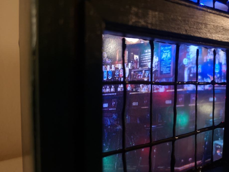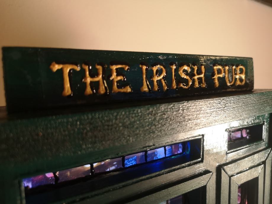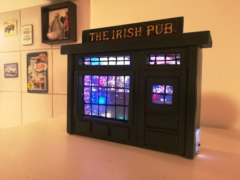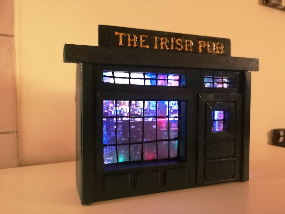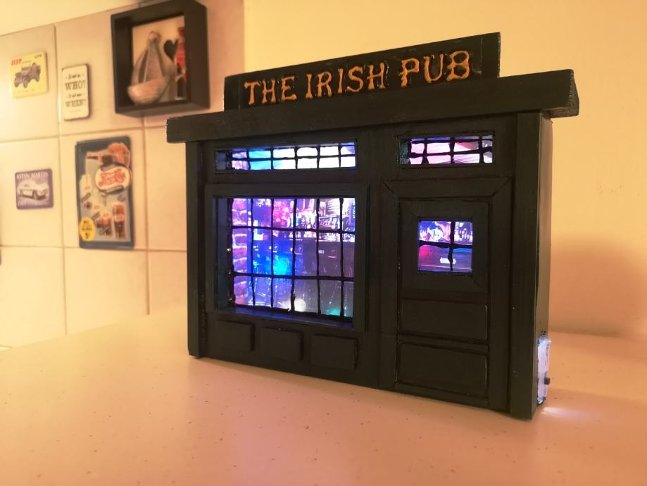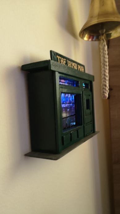 Ukrasna kutija, the irish pub, karton/drvo/staklo, sa led osvjetljenjem, dvije AA baterije, akrilne boje, ručni rad, unikat, svjetleća dekoracija za dom ili kafić, pub, može se staviti na zid ili kao samostojeća. Dimenzije ukupno 26 x 20 x 6 cm, sama kutija 23 x 16 x 6 cm. Ne šaljem pouzećem