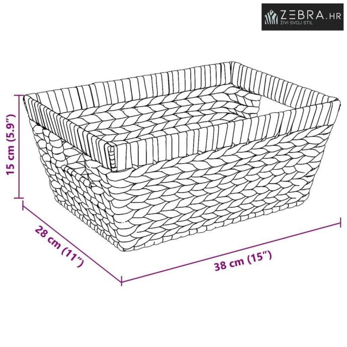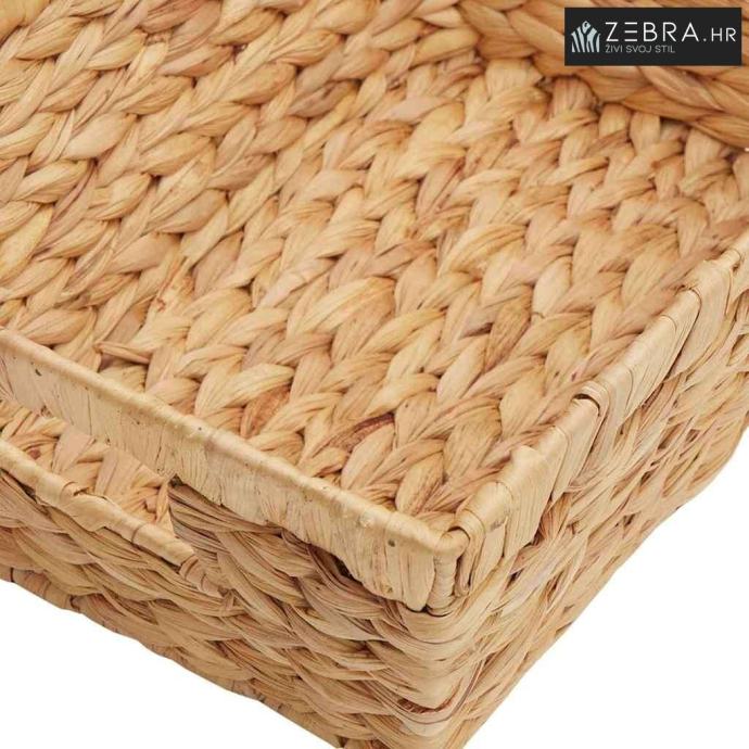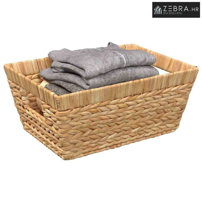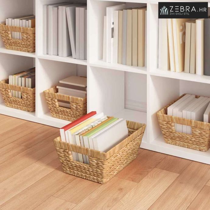 Prirodni materijal: Izrađene u potpunosti od vodene zumbul, ove košare nisu samo lijepe, nego donose i prirodnu estetiku koja se savršeno uklapa u svaki dekor. Prirodna otpornost vodene zumbul osigurava dugotrajnu upotrebu, čineći ih praktičnim i izdržljivim rješenjem za pohranu.