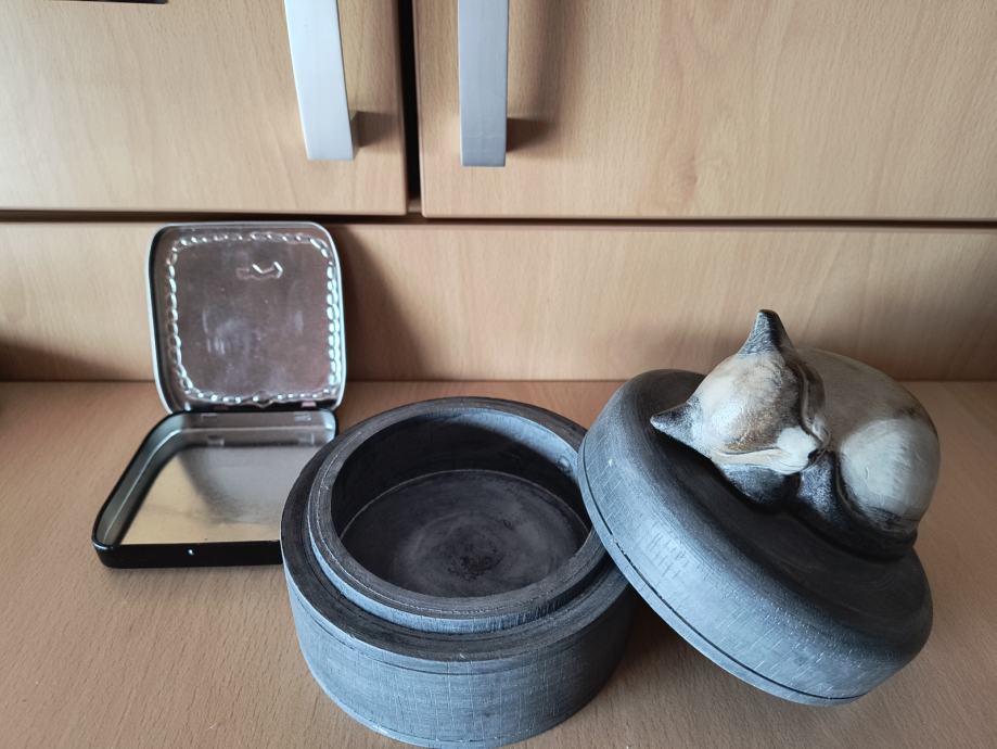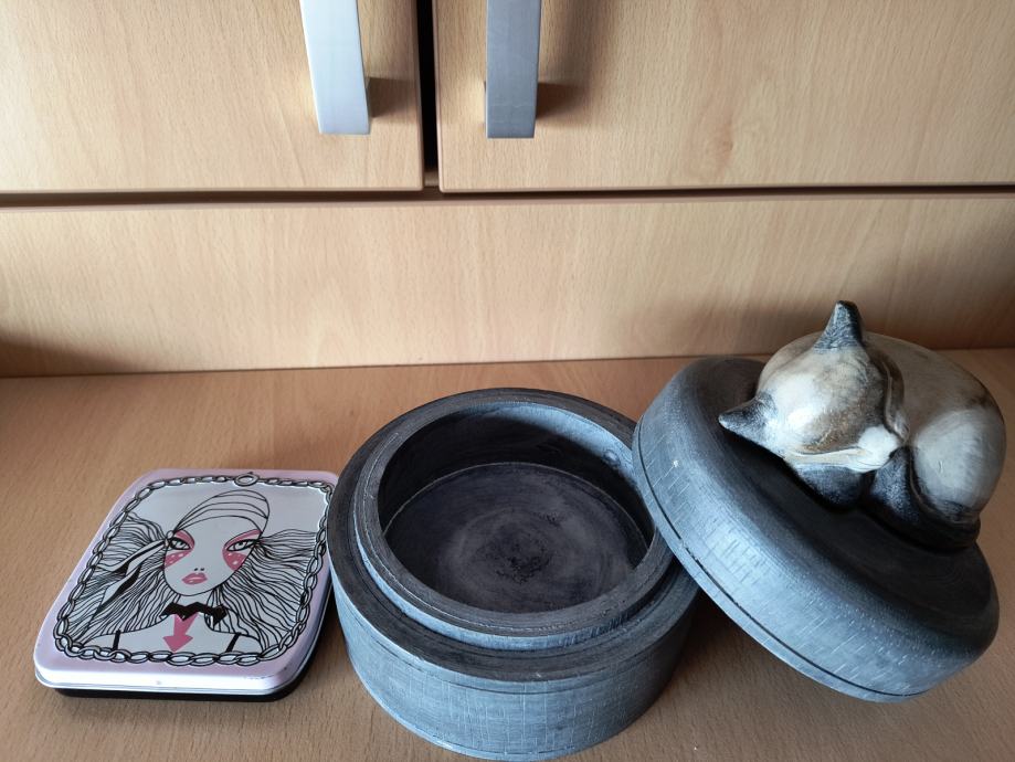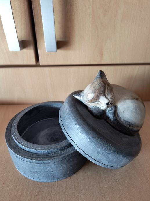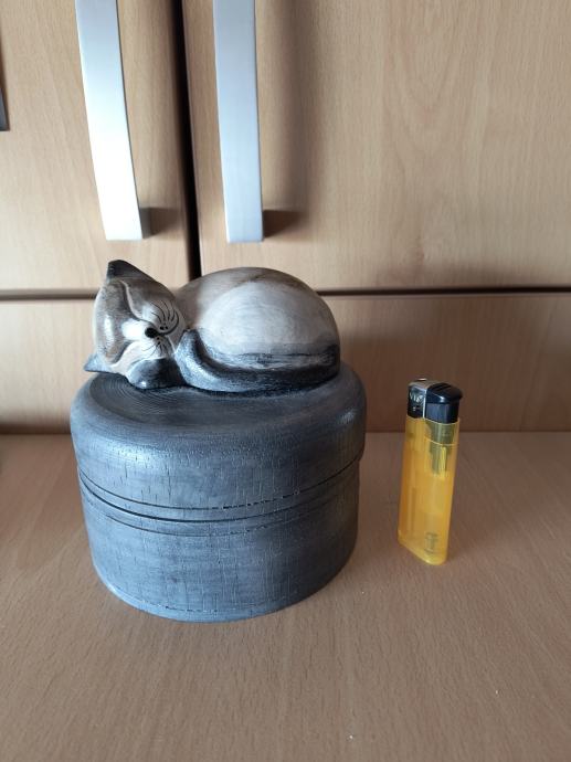 Predivna kutija za nakit "maca" visina 8 cm bez mace, s macom 14 cm, širina po sredini 14 cm,
