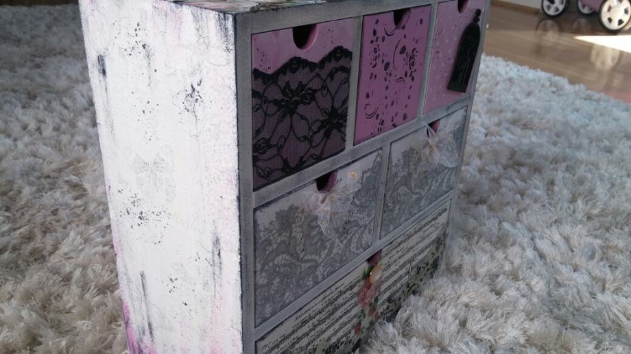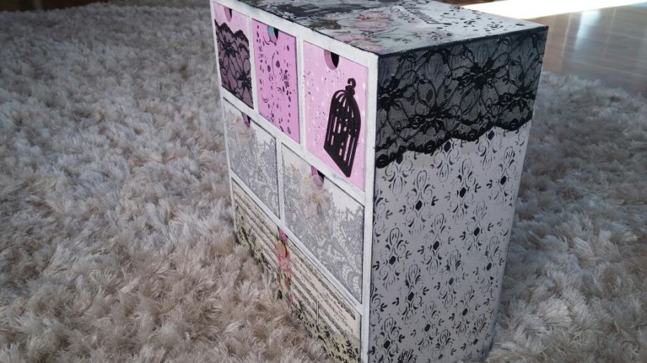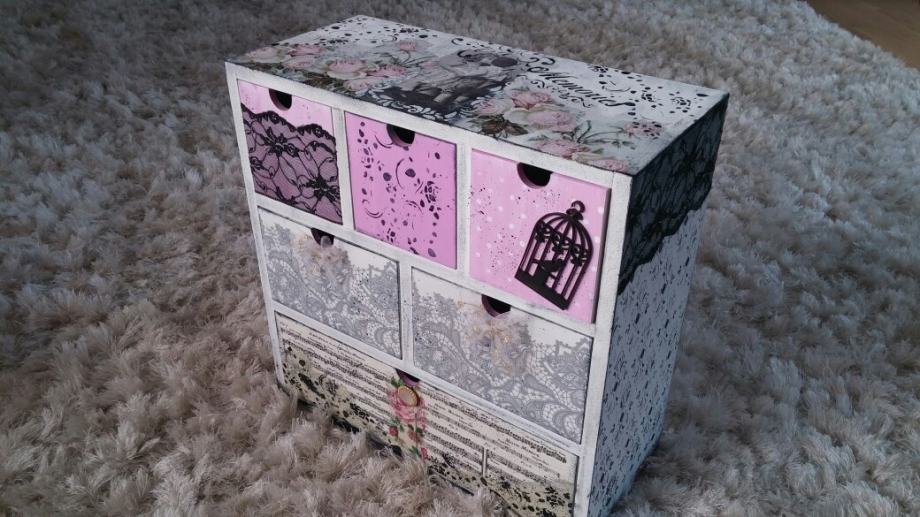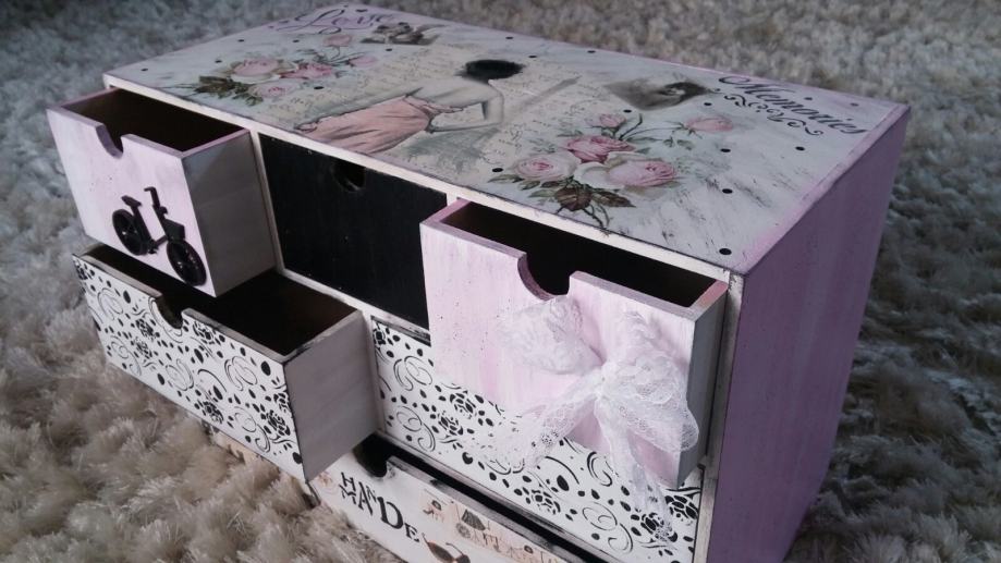 Prodajem novu, unikatnu kutiju tza nakit. 40×20×28cm. Idealnu za poklon. Sve radove mozete pogledati na fejs stranici Slatki dom-decoupage