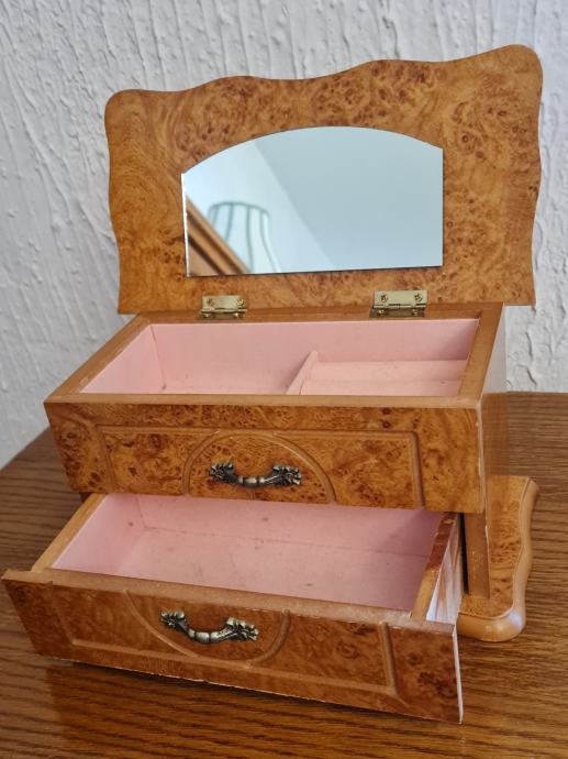 Prekrasna kutija za nakit dimenzije 23 dužina 12 cm širina i 12,5 cm visina , materijal drvo, šaljem po dogovoru na teret kupca,