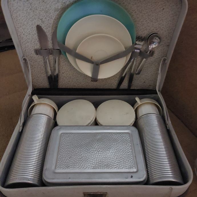 Prodajem kutiju sa priborom za piknik.U kutiji su pribor za jelo,šalice sa tanjurićima i 2 termos boce.Cijena 10e.