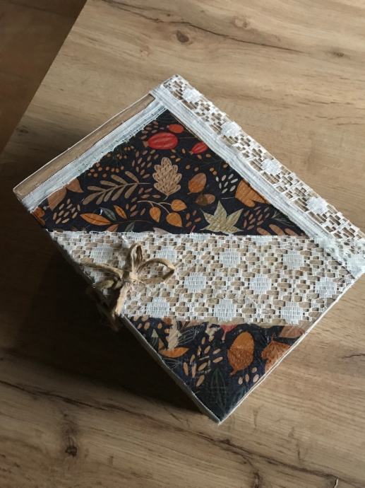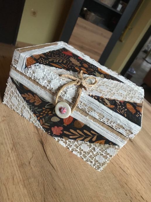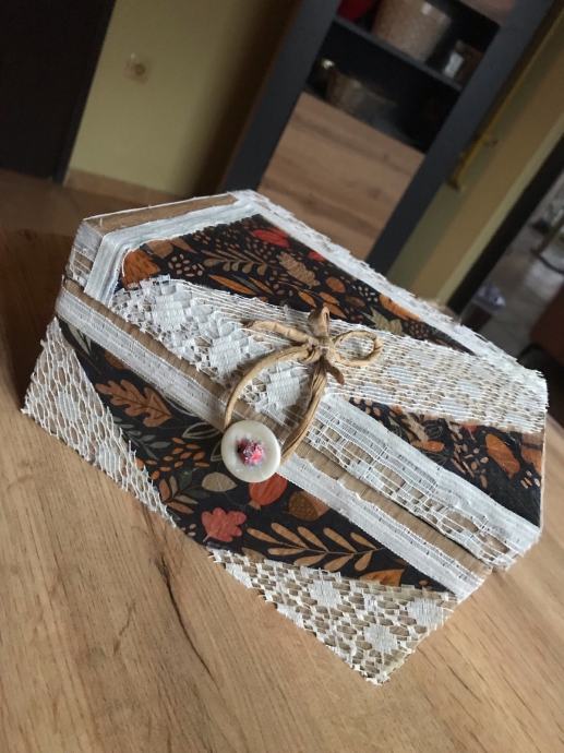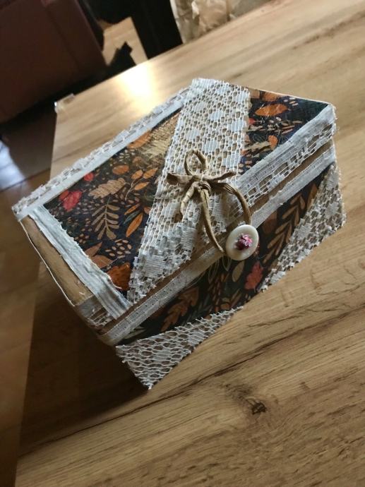 Nova handmade kutija , karton, salvetna tehnika, tekstil za pohranu malih dragocjenosti ili po potrebi i želji