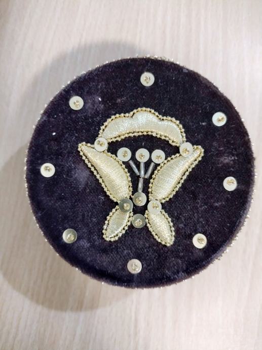 Kutija ukrašena zlatovezom, promjer 10 cm