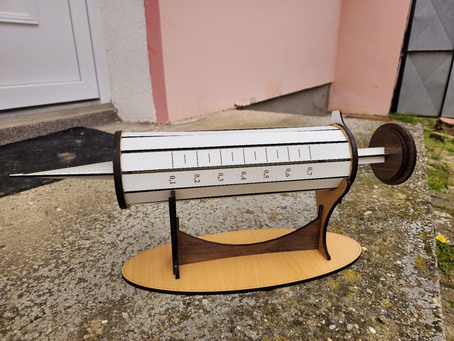 Prodajem kutiju za vino ili šampanjac u obliku velike injekcije tj šprice.