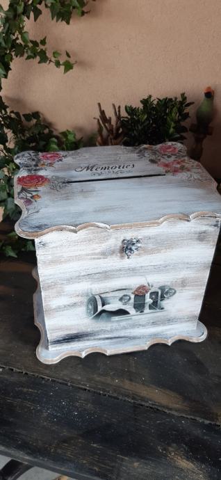 Unikat. Rucni rad. 30×24×26. Kutija za ubacivat koverte u decoupage tehnici