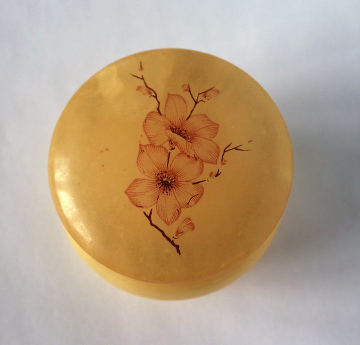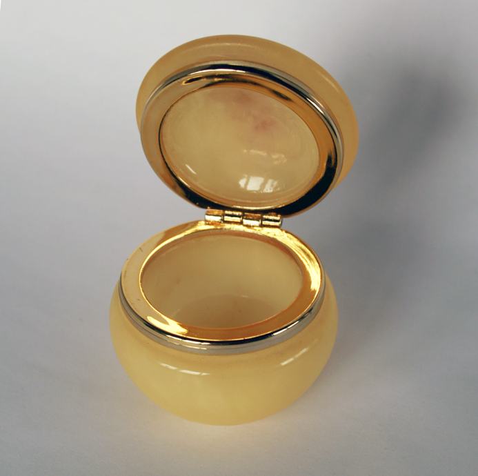 Visina 4,5 cm, širine 5 cm ova je posudica izrađena od alabastera.