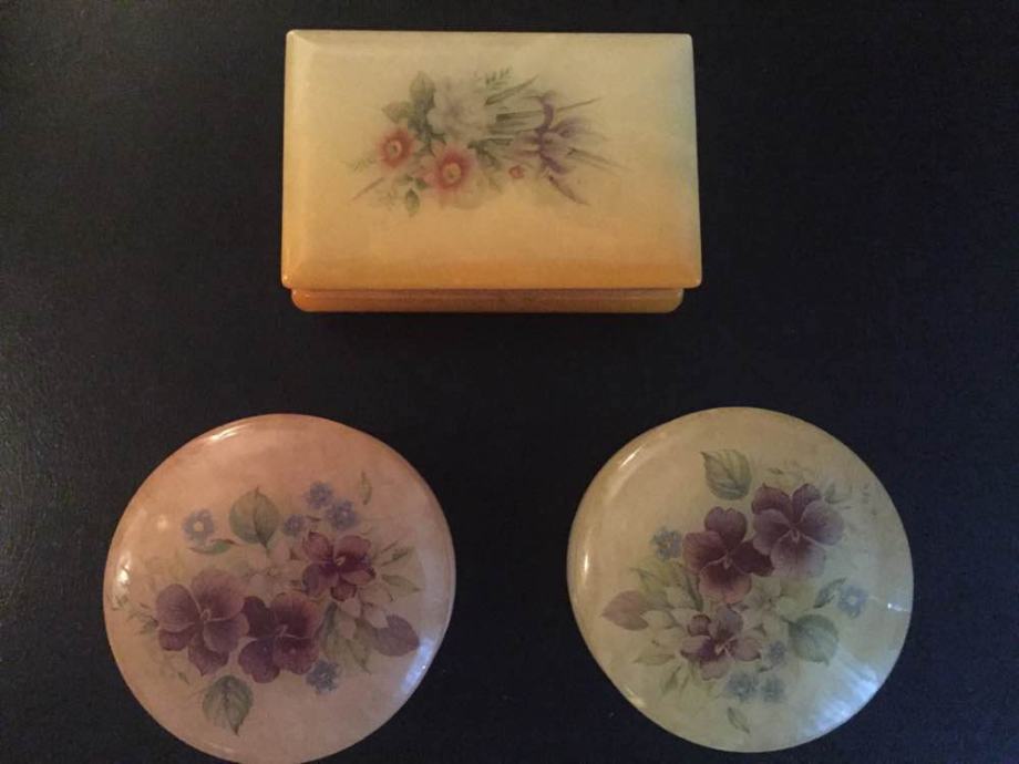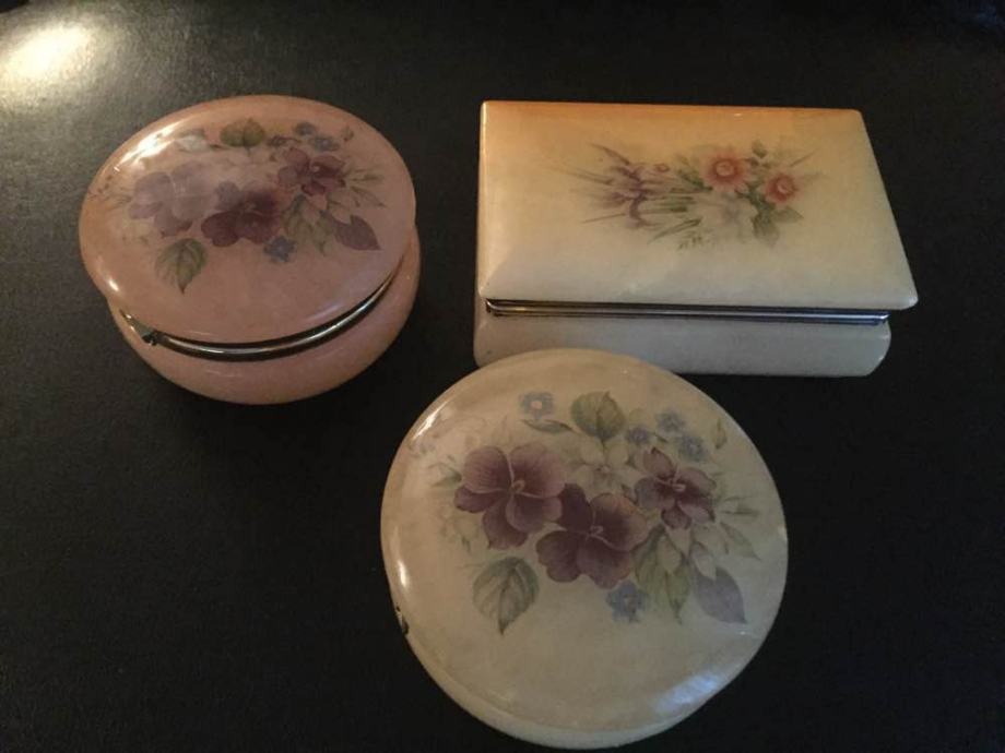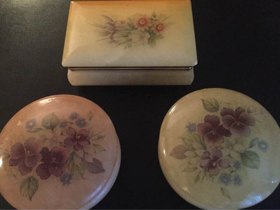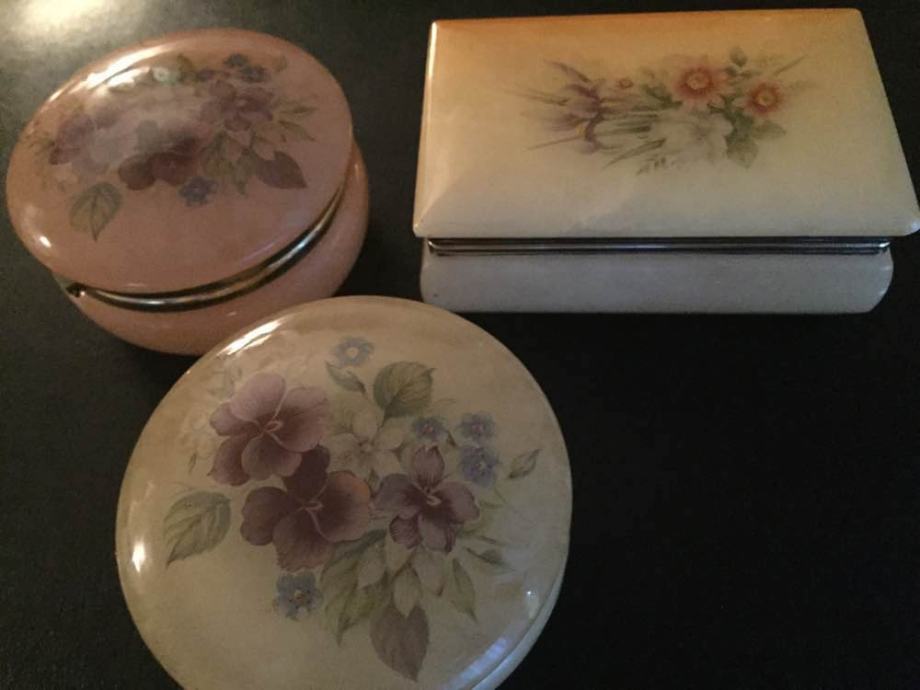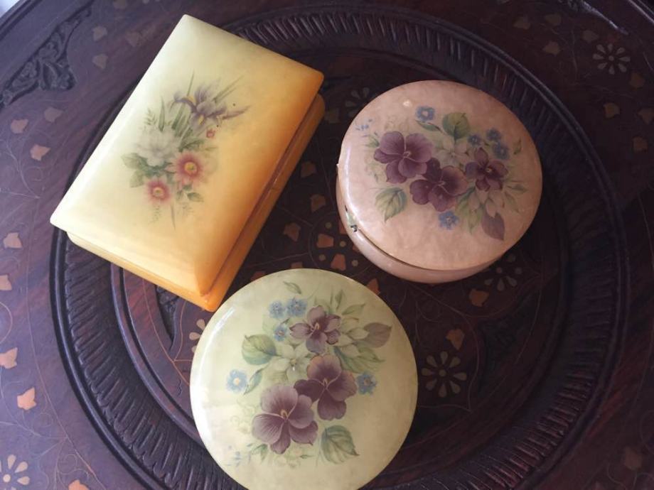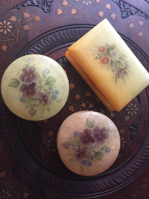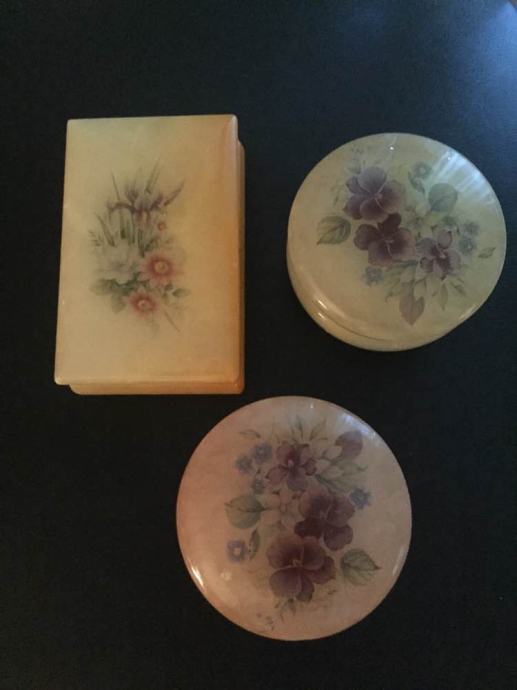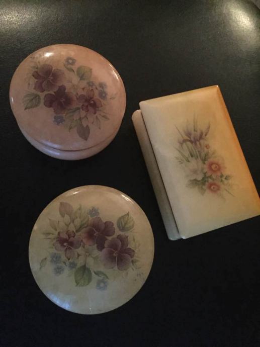 ONYX MARBLE..alabaster mramor..ukrasne kutije za nakit od poludragog Onyx kamena ..cvjetni motiv..vrlo efektne..pastelno roza..siva..boja breskve...cijena pojedinačno..vintage..