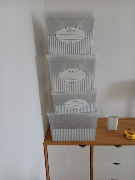 Prodajem više komada plasticnih kutija za pohranu.Dimenzije Visina 24 i 16(ima dvije visine kutija) Širina 31 i dužina 37