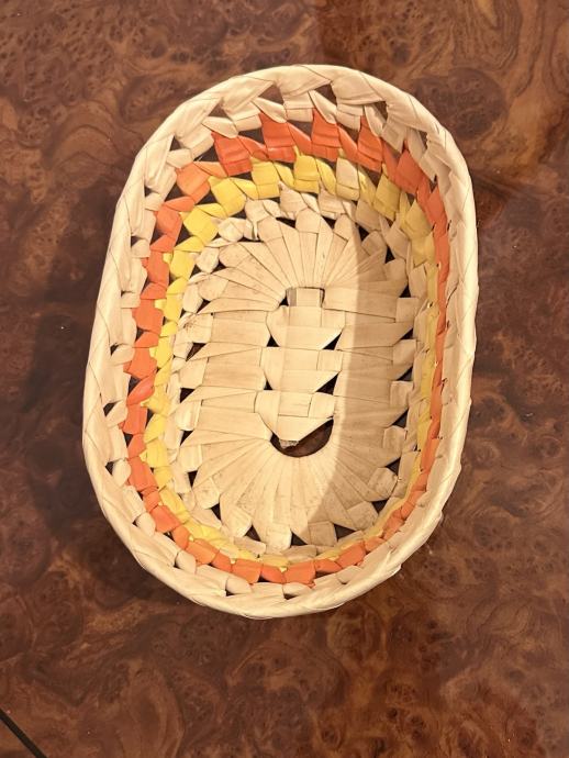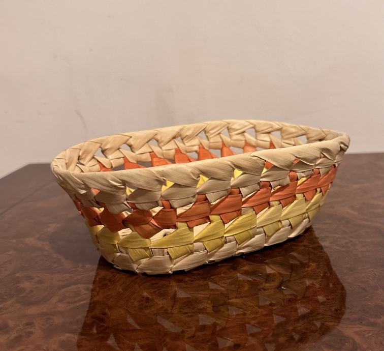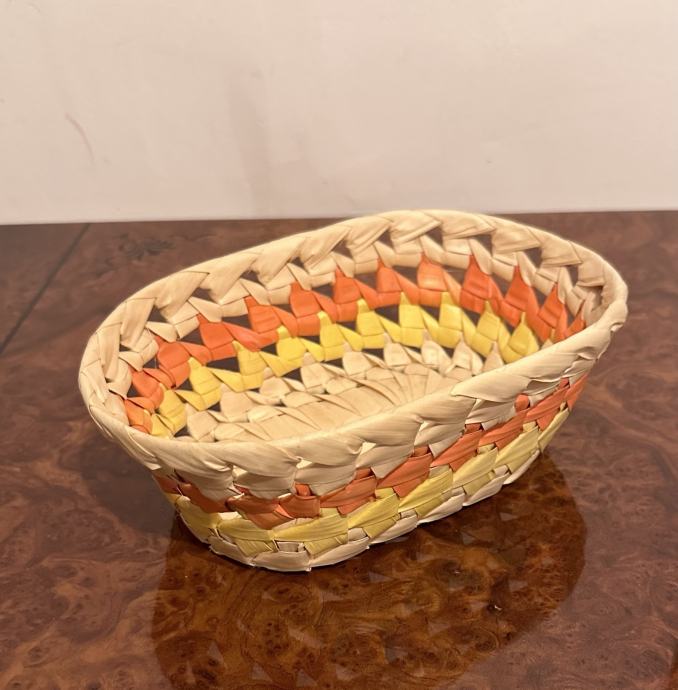 Pletena košarica dimenzija 21x13,5 cm, visine 7 cm.