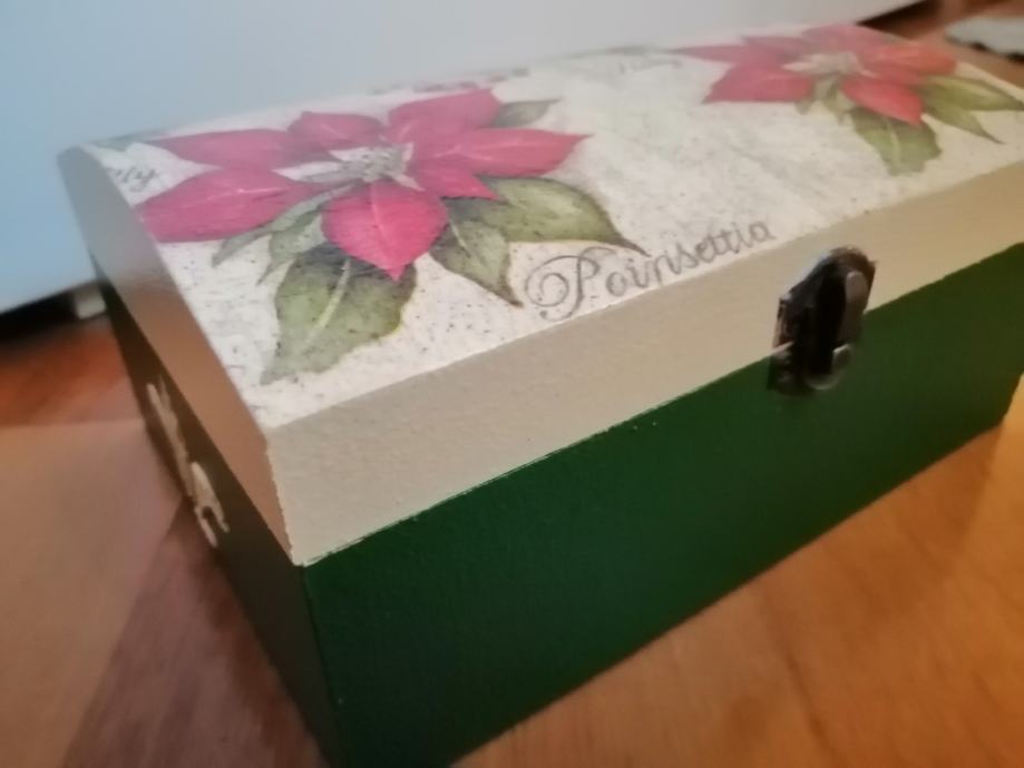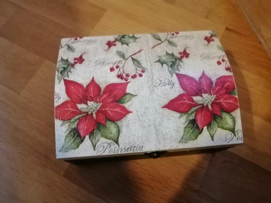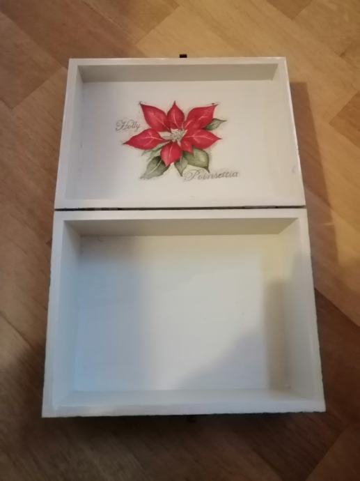 Drvena kutija bojana i ukrašena salvetnom tehnikom.