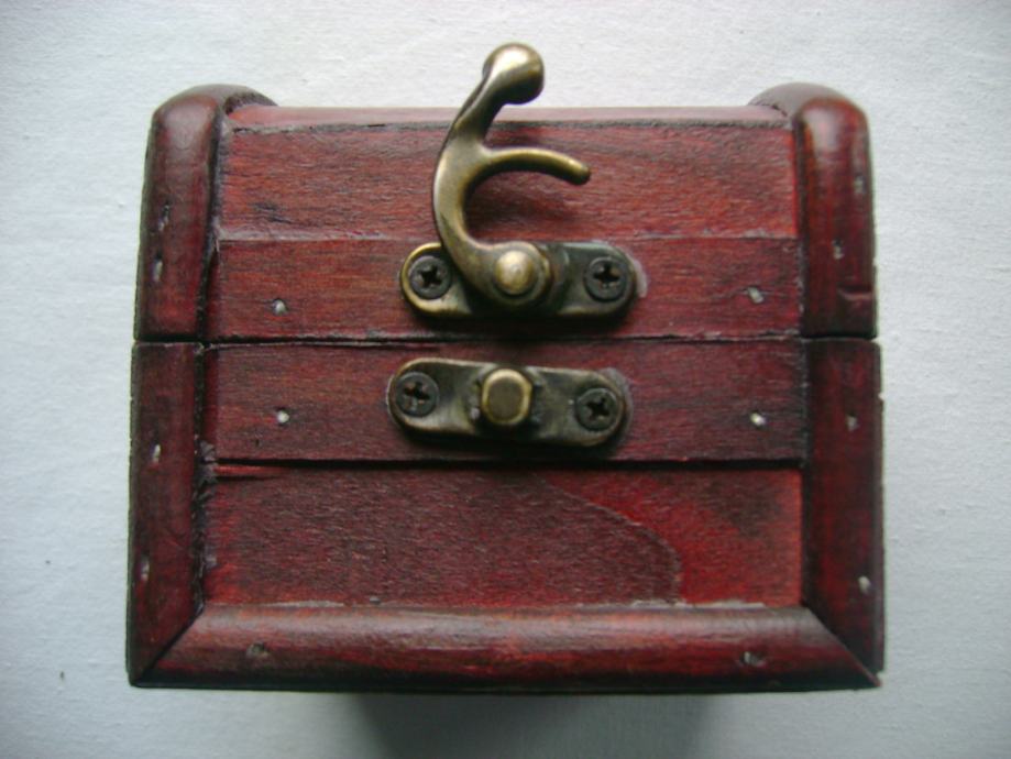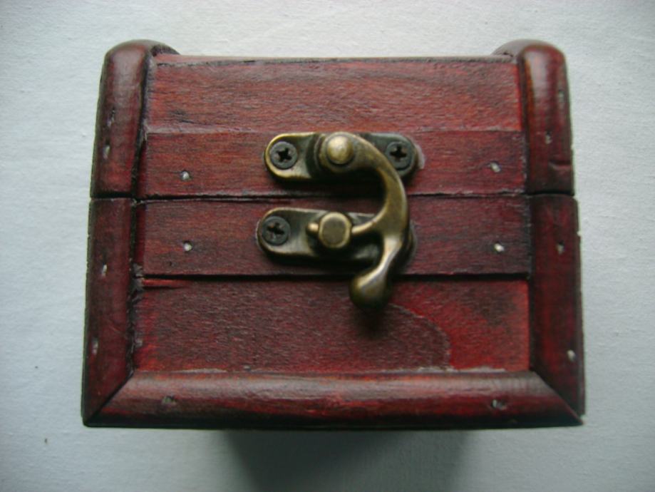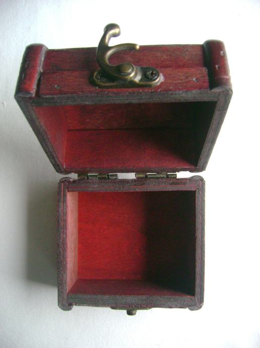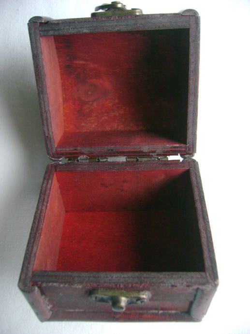 Ukrasna drvena kutijica, 9 x 8 x 8 cm, sa bravicom za zatvaranje - stanje je vidljivo na slici.