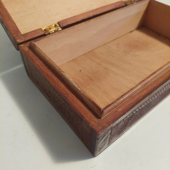 Prodajem ovu lijepu izrezbarenu kutiju za nakit ili prema vašim potrebama. Kutija je dobro sačuvana i bez oštećenja. Dimenzije su prikazane na slikama. Postoji mogućnost dogovora oko prijevoza ili dostave. Za ostale informacije možete me kontaktirati na mob.098 284781