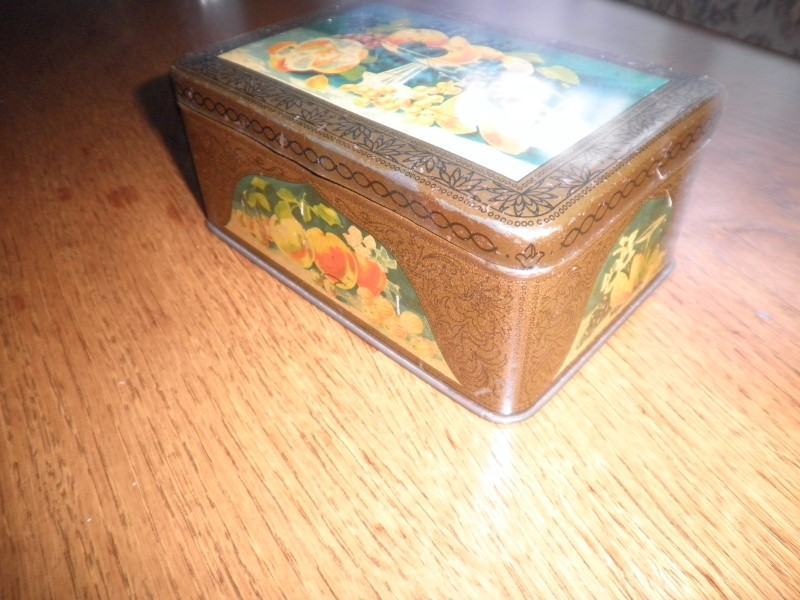 Prelijepa i odlično očuvana stara metalna kutija sa zanimljivim motivom.