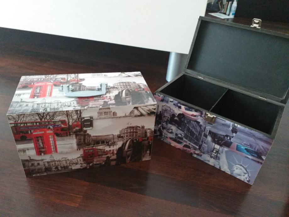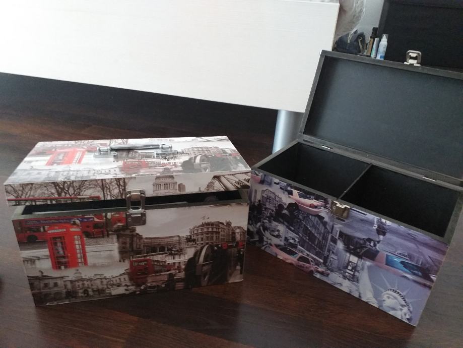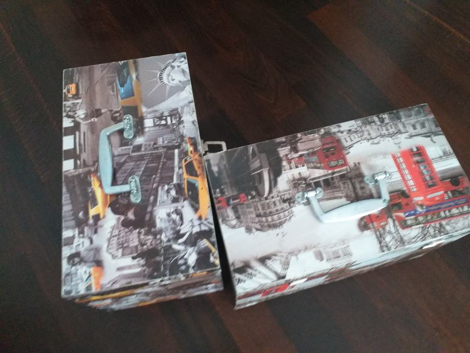 Dva kovcega s ruckom, uzorak New York i London. Cijena je za oba, moze i pojedinacna prodaja.