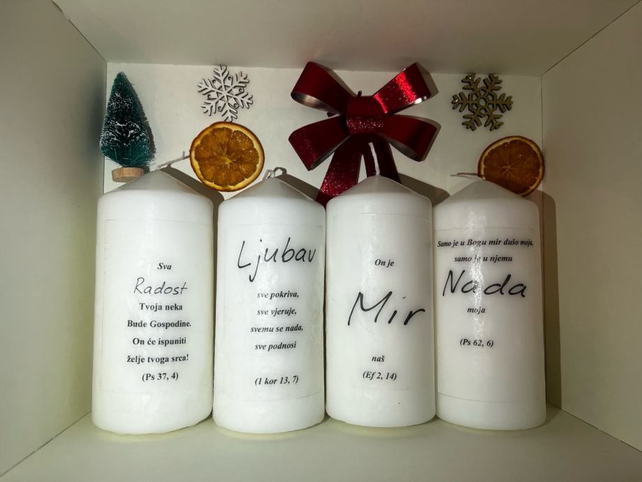 Unikatne adventske svijeće s biblijskim porukama. Upotpunite najljepše i najposebnije doba godine ručno izrađenim svijećama.
