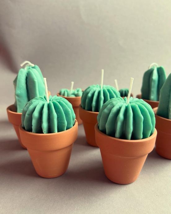 Kaktus svijeća u terakoti od sojinog voska sa uljem ružmarina i smilja.