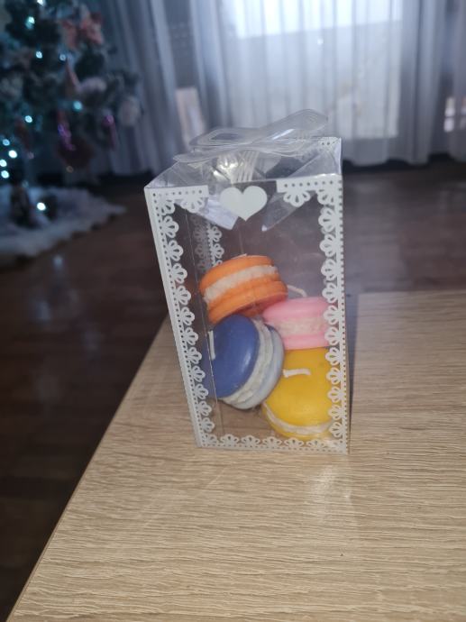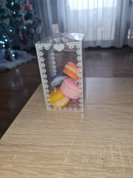 Predivan dekorativni poklon set sa svijećama u obliku macaronsa, upakiran u elegantnu prozirnu kutiju s mašnicom. Idealan poklon za rođendane, praznike, godišnjice ili kao pažnja dragoj osobi.