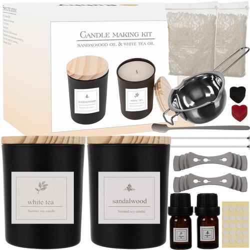 36 u 1 - ovaj veliki set ima čak 36 elemenata. On omogućuje stvaranje 2 kompletne svijeće. Set uključuje: 2x staklenke s poklopcima za višekratnu upotrebu; 2x naljepnice za staklenke; 2x mirisna ulja; 2x pamučni fitilj; 2x vrećice voska; 2x gnječilice za vosak; 1x lonac za topljenje voska; 1x žličica; 20x okrugle naljepnice za fitilj; 2x boja.
