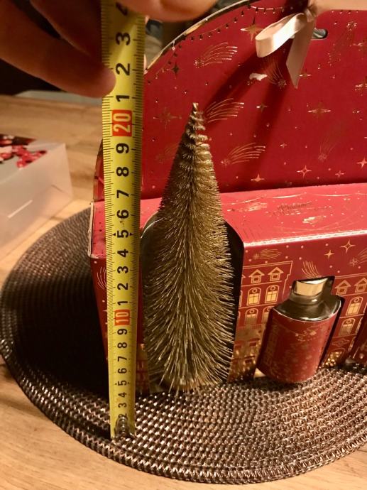 Sadrži - mirisnu svijeću - miris u tekućini za kuću ili za cvjetni potpuri- umjetni bor ; visine cca 20 cm.