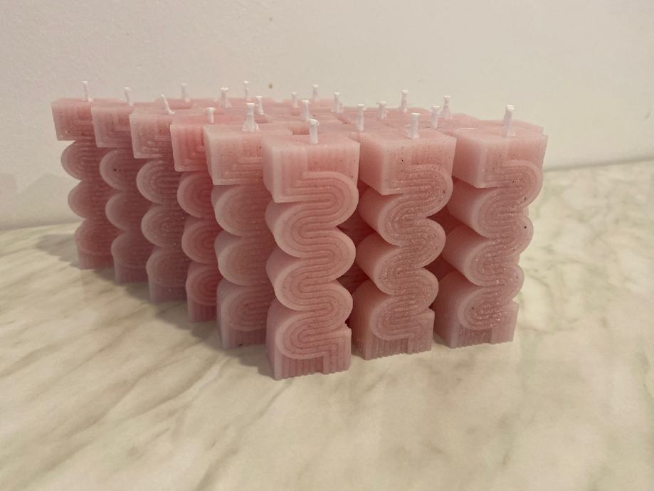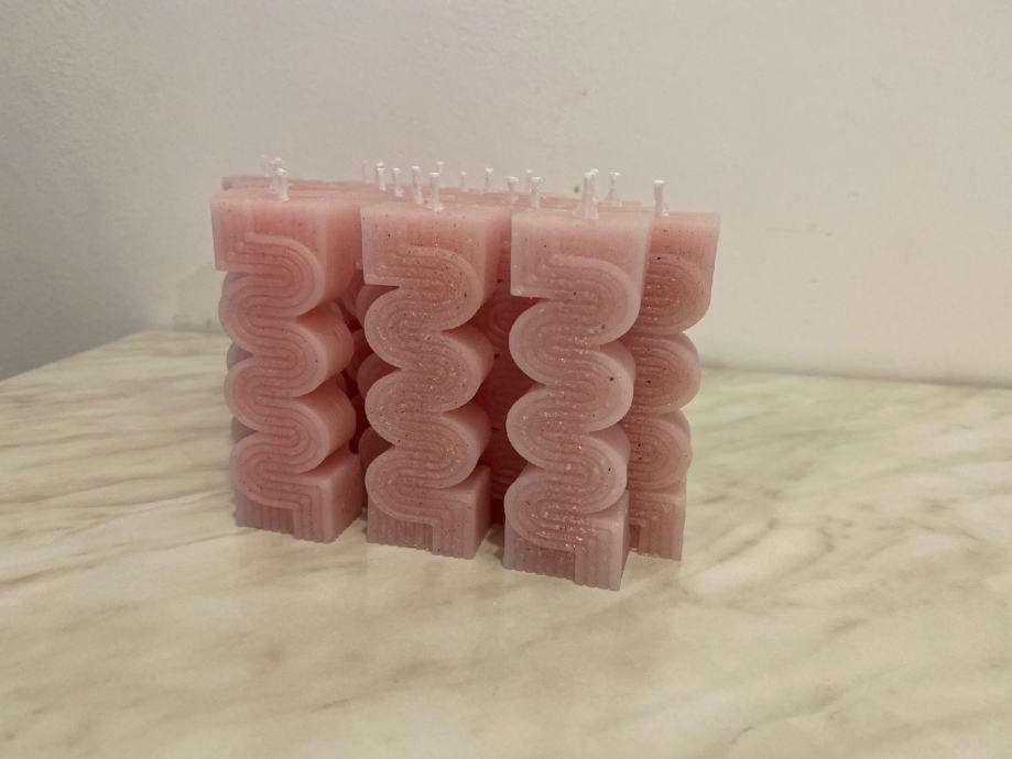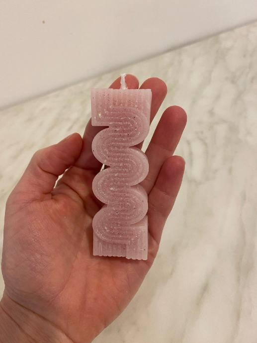 Svijeće nježno roze boje s šljokicama, blagog mirisa.