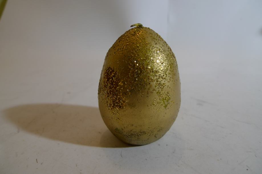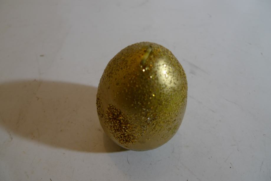 Svijeća u obliku jaja, zlatna veličine 8 cm.